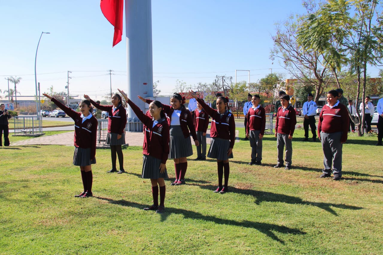 En el acto cívico participaron estudiantes de la primaria Benito Juárez, con una emotiva poesía coral, así como la Banda de Guerra de la Secundaria Oficial de Irapuato, quienes contribuyeron a realzar la solemnidad del evento.